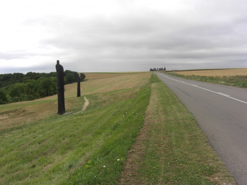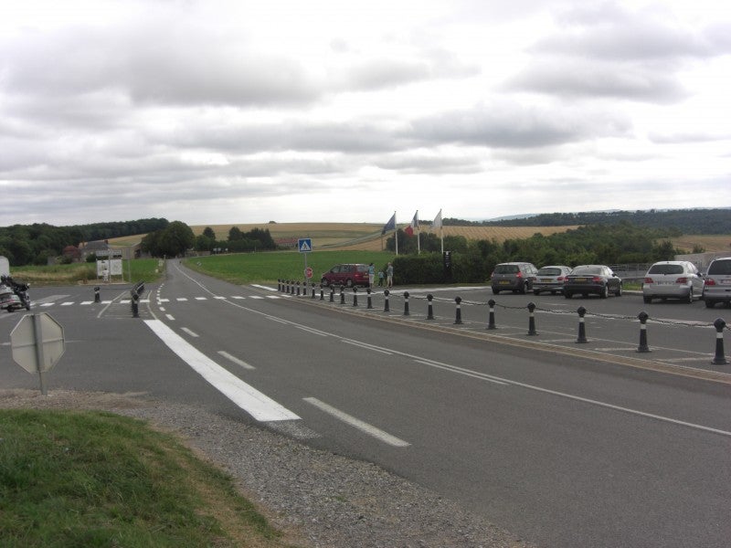 Richting de ferme d'Hurtebise (boven schematisch en onder de realiteit) met daartussen het voormalige niemandsland met destijds de looppgraven. Na september 1914 en tot januari 1915 zaten de Fransen in de Caverne en de Duitsers lagen bij de boerderij d'Hurtebise.