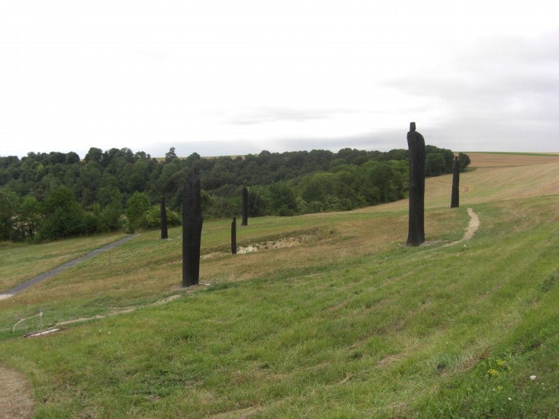 Blik naar het zuiden met verloop van de loopgraven boven en onder het huidige uitzicht
