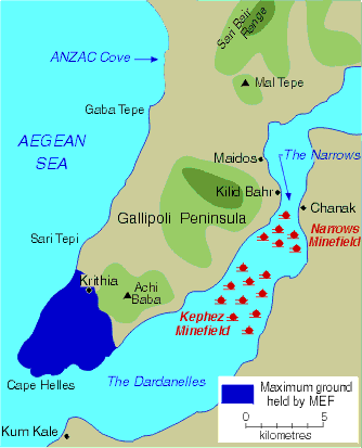 Evenals de ANZAC troepen de hoogte Chunuk Bair (hoogste punt Gallipoli) niet bereikten, konden ook de Engelse troepen de hoogte Achi Baba niet bereiken.