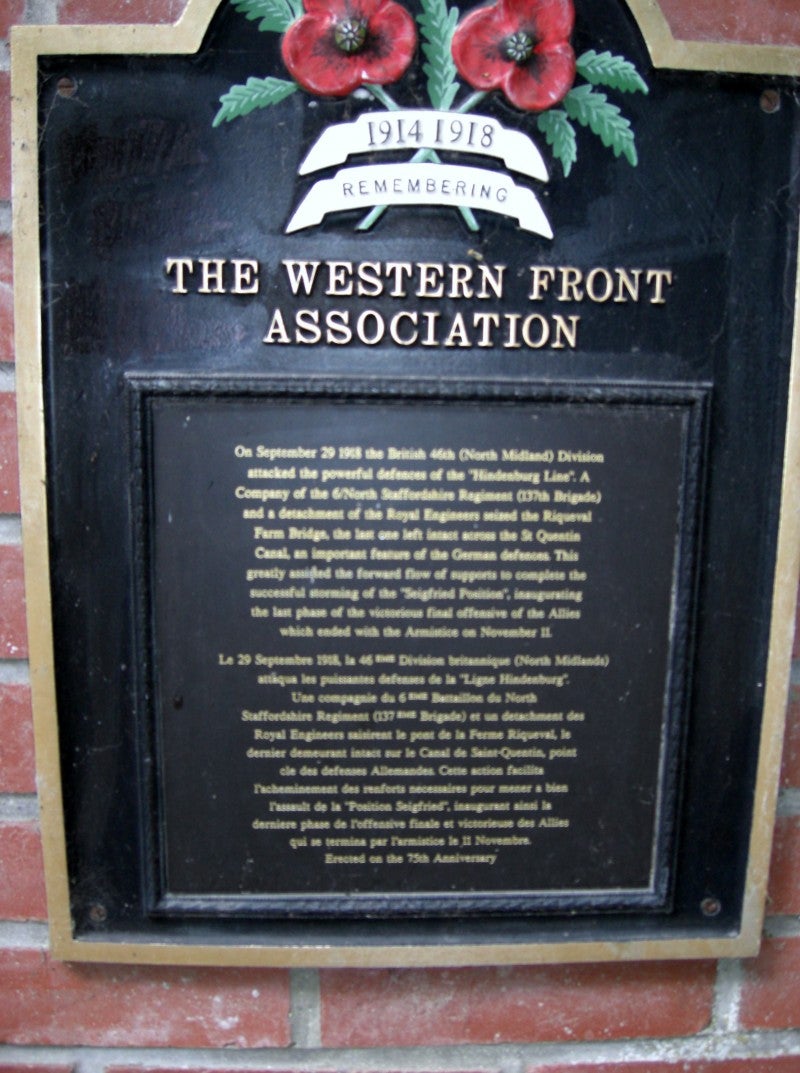Voorbij St Quentin rijdend naar het noorden richting Cambai passeert men de beroemde (van de persfoto) Rickeval brug. Hier is ook het gebied van de "Siegfried Stellung". De brug is er nog steeds alhoewel wat verborgen in een bossage.