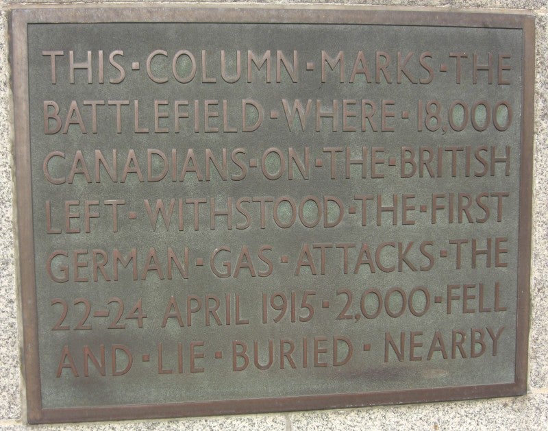 Dit Canadian Forces memorial bij St Juliaan werd opgericht ter herinnering aan de 2000 doden van de 1e Canadese divisie, gesneuveld tijdens de tegenaanvallen na de Duitse gasaanvallen in april en mei 1915.(2e slag bij Ieper). In de volksmond wordt gesproken van de "canadien" . Het monument dateert uit 1921.