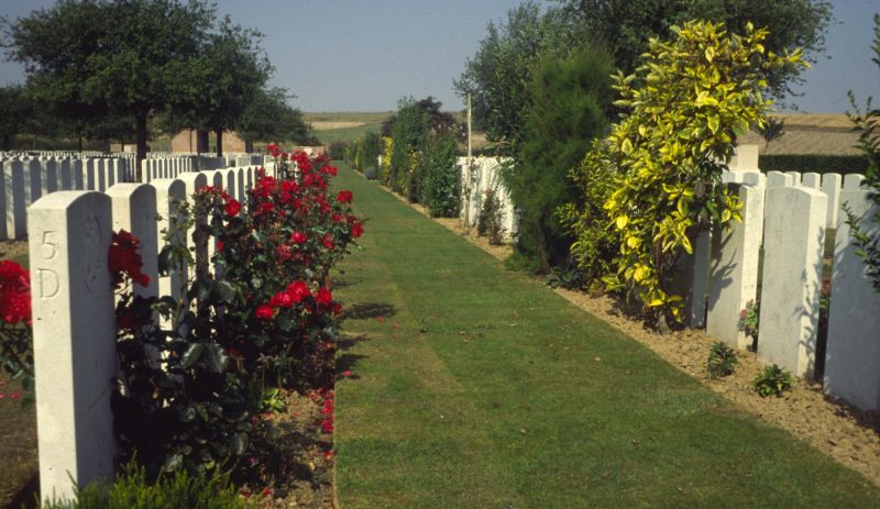 De groene borden van de CWGC (Commonwealth War Graves Commission) geven de graven aan. Je kan ze ook in Vlaanderen vinden als “oorlogsgraven van het Gemenebest”, wat vaker bij burgerlijke begraafplaatsen waar dan ook soldaten werden begraven, in Frankrijk heten ze “Tombes de Guerre de Commonwealth”.