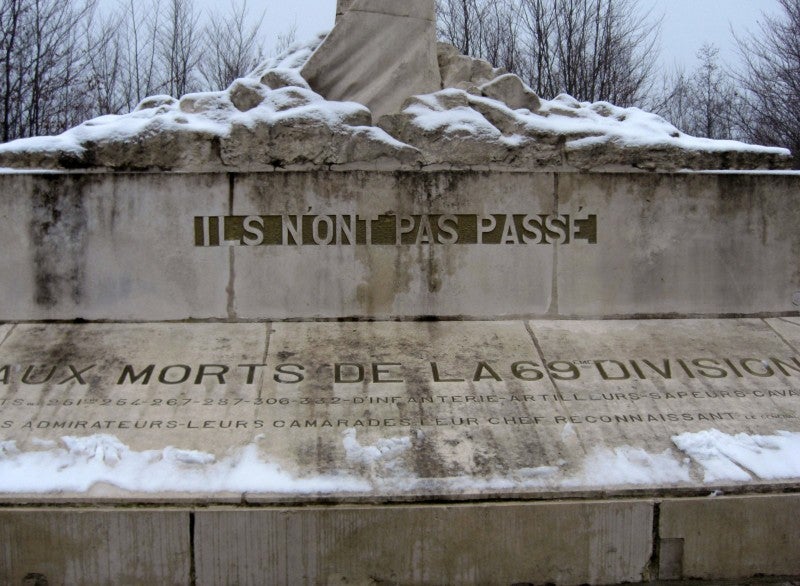 de beboste omgeving rond het monument met de kraters van massale granaatinslagen